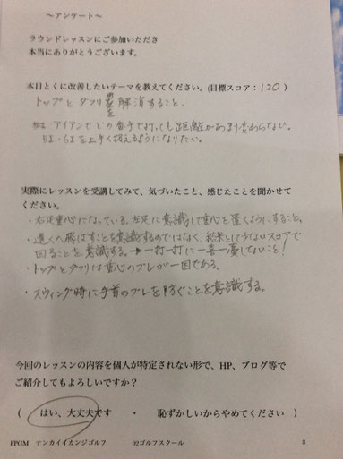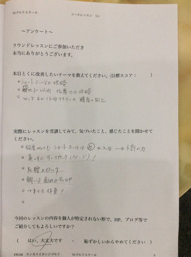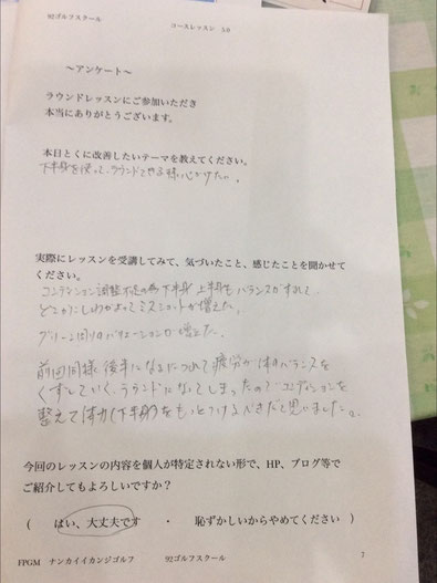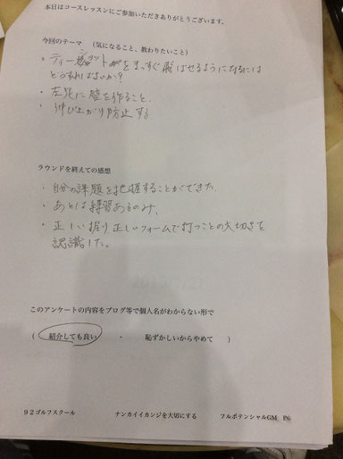 実際にコースレッスンに参加していただいた方に、レッスン後のフォローアップとして
