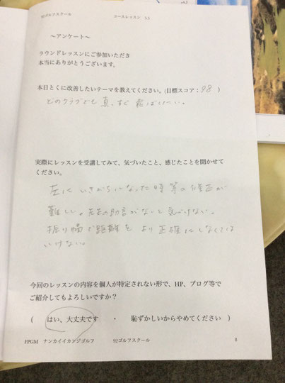 ・目標地点に正確に飛ばしたい、スイングもバラバラ。本日修正したい。